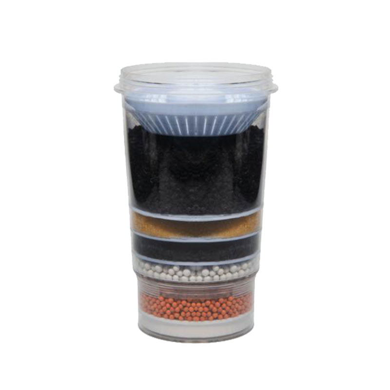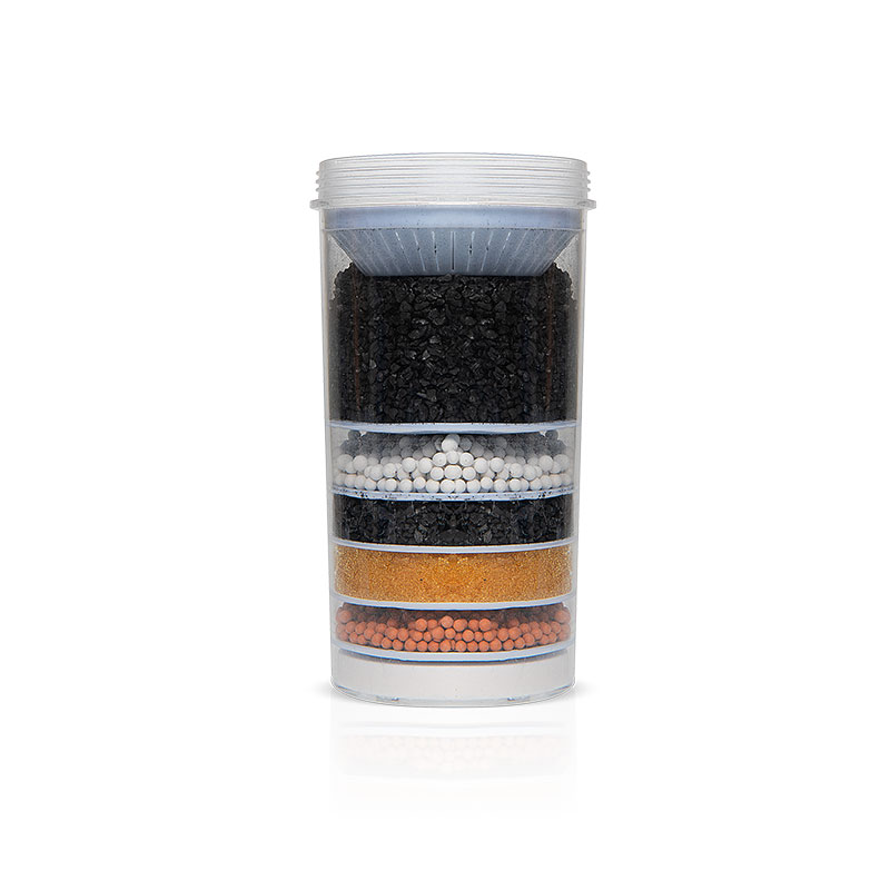 Elimina las impurezas físicas y químicas como el cloro, flúor y el óxido, metales pesados, mercurio, plomo. Proporciona agua de sabor natural, inodora, incolora e insabora.